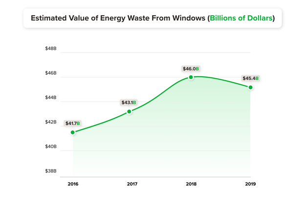 With help from Berkeley Lab, Crown identified more recent data from the EIA on commercial and residential energy consumption and expenditures, and then applied that data to the current body of research on window energy waste. The team also looked at several years of data – from 2016 to 2019, the most recent year available – to identify any notable trends. What was found was not surprising, but still concerning: The cost of window energy waste has increased to more than $45 billion per year.