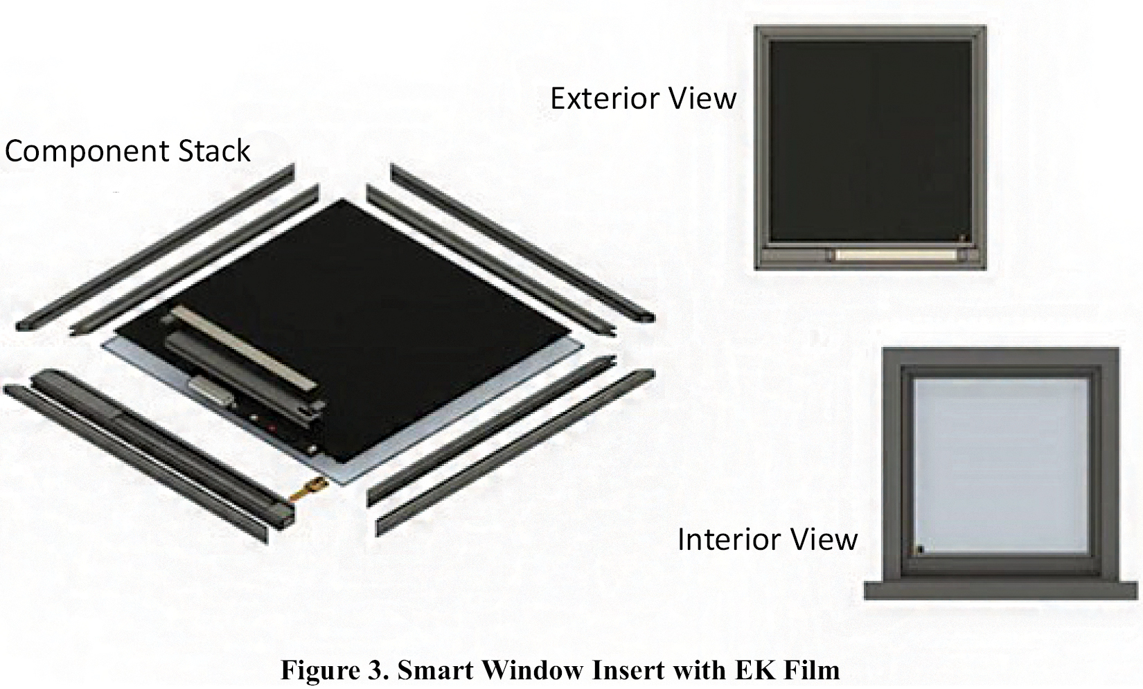 Crown’s first product will be the Smart Window Insert powered by DynamicTintTM which is specifically designed for retrofitting in the domestic and international commercial real estate install base. Our DynamicTintTM can be laminated to other surfaces like heat-treated glass or acrylic and the laminated sheet can be assembled in Smart Window Inserts that can be placed into the interior side of the window frame providing the dynamic tinting capability as well as additional insulation and sound proofing to the existing windows (Figure 3).